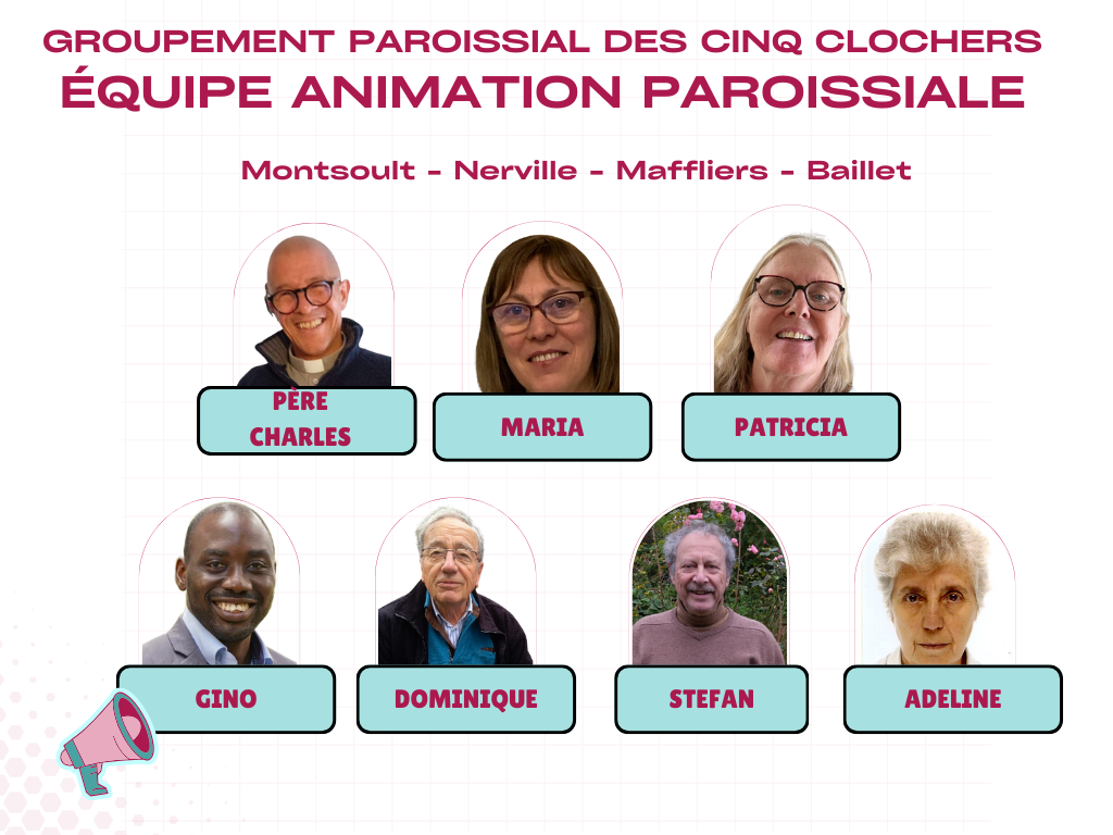 L’équipe d’animation pastorale (EAP) aide notre curé à animer le groupe et à assurer le bon déroulement des activités selon les orientations du diocèse.